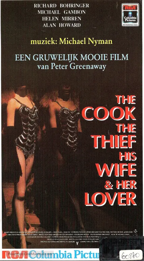 The Cook, the Thief, His Wife & Her Lover is a film written and directed by Peter Greenaway starring Helen Mirren, Alan Howard, Richard Bohringer and Michael.
